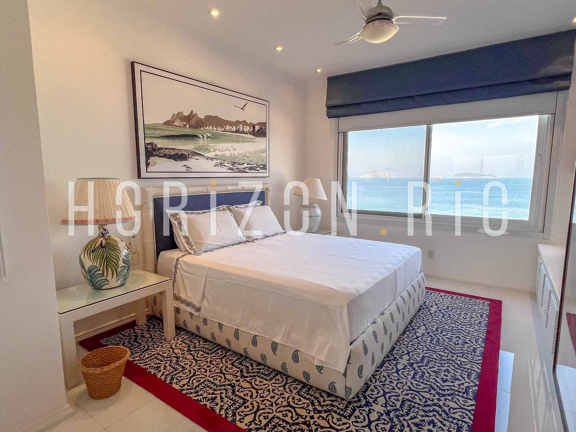 La cuisine est de style moderne et américain, vous garantissant d'avoir absolument tout ce dont vous avez besoin pour votre séjour. Le salon est très spacieux, avec de beaux meubles européens et des vues spectaculaires d'Arpoador jusqu'au bout de la plage d'Ipanema. Ces fenêtres s'ouvrent pour vous permettre de sentir la brise marine et d'entendre le clapotis des vagues.