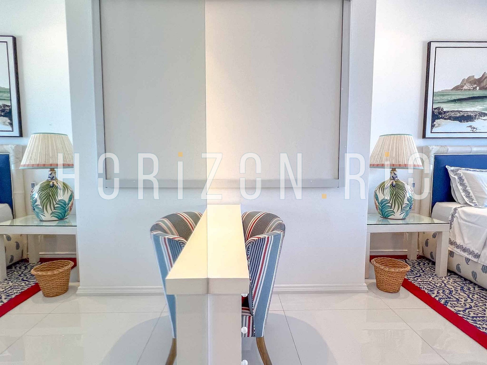 Ambos os quartos oferecem vistas panorâmicas para a praia e para o oceano. Estão decorados num estilo luminoso e apresentam excelente luz natural. No quarto principal, você vai encontrar TV a cabo e uma cama queen-size. Este quarto tem uma grande casa de banho privativa com uma banheira que vai realmente fazer você se sentir mimado em sua casa longe de casa. O segundo quarto tem uma cama king-size e no corredor você encontrará o banheiro de hóspedes com o segundo chuveiro. A sala também tem um sofá-cama e uma longa divisória que permite transformar o espaço em um 'terceiro quarto' com total privacidade.